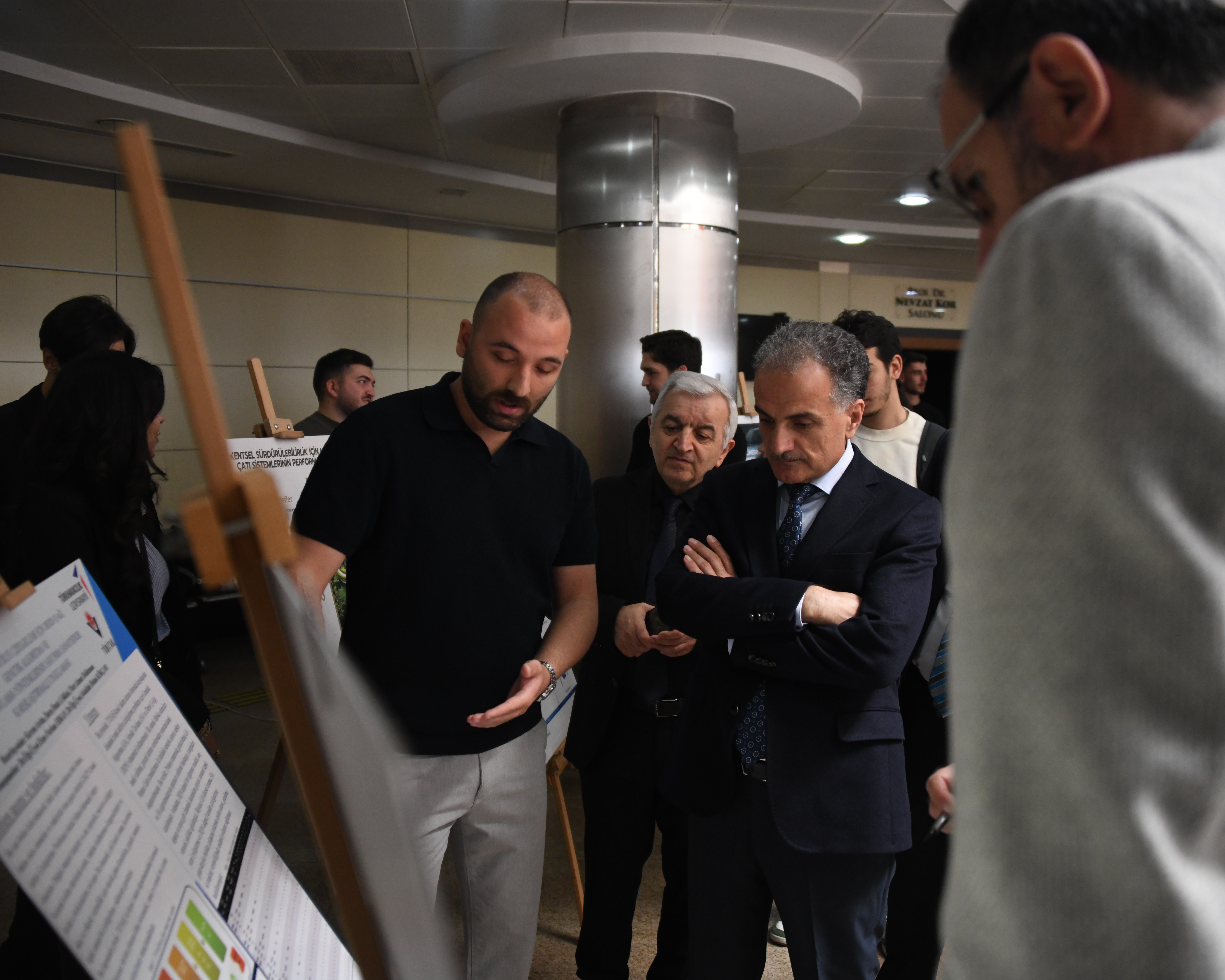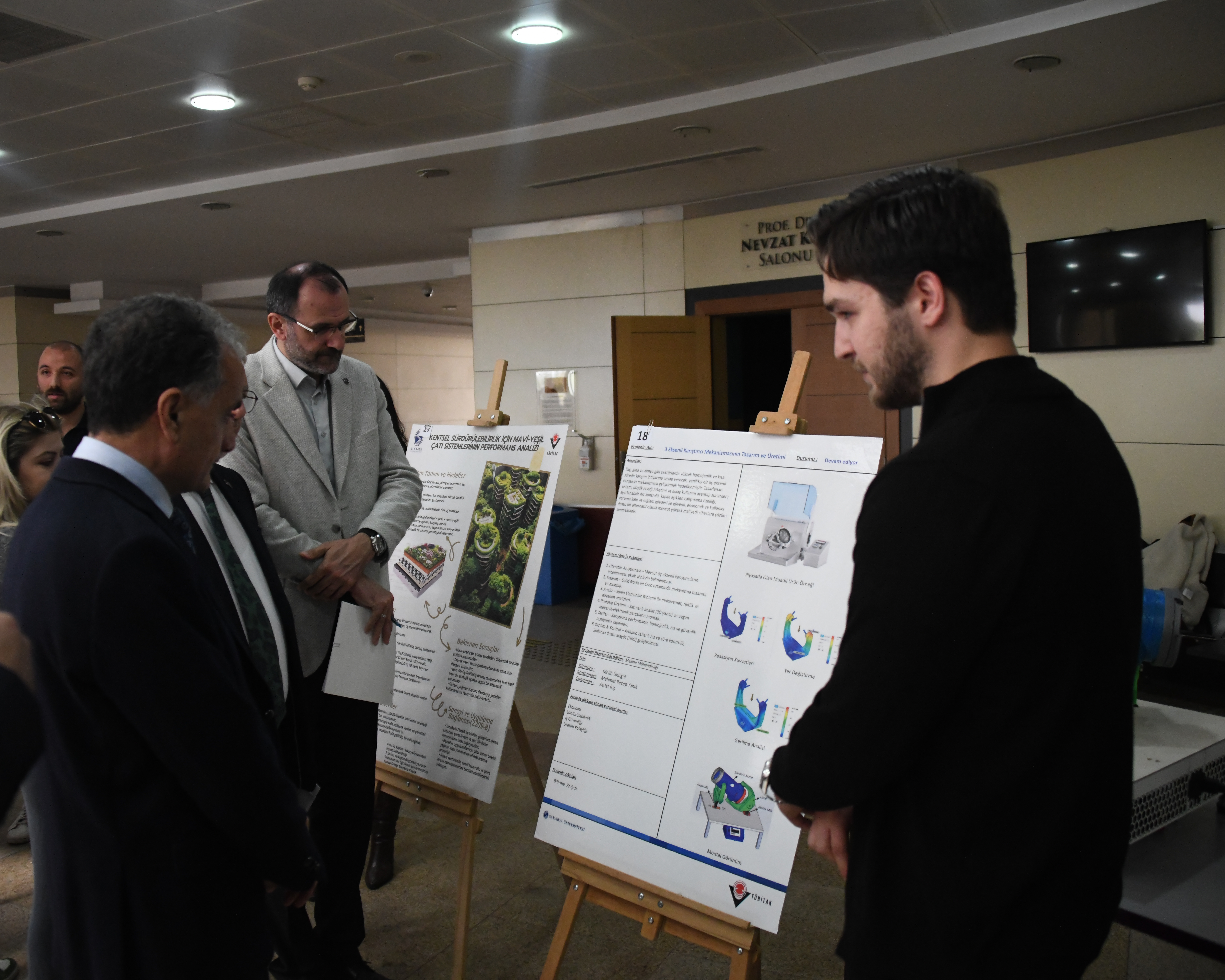 Protokol üyeleri, öğrencilerin stantlarını tek tek ziyaret ederek 27 farklı proje hakkında detaylı bilgi aldı. Endüstriyel robotik sistemlerden akıllı sağlık teknolojilerine, jeotermal enerji optimizasyonundan dijital entegrasyon sistemlerine kadar pek çok yenilikçi fikir sergilendi.