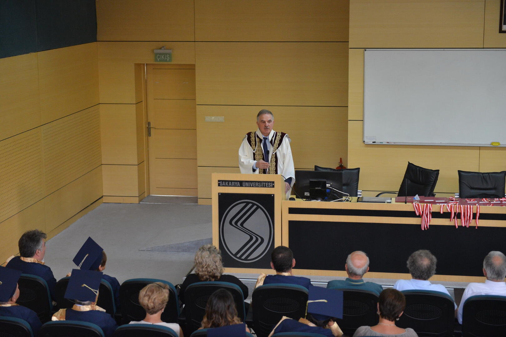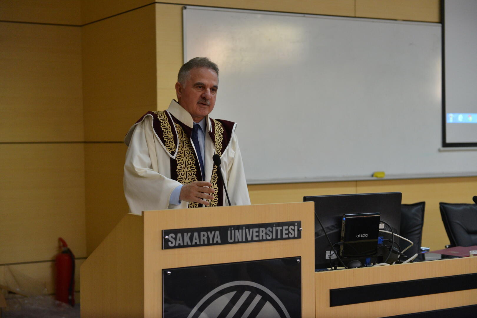 Törende bir konuşma yapan Rektörü Prof. Dr. Muzaffer Elmas, kendisinin de 1980’de İTÜ İnşaat Fakültesi’nden mezun olduğunu ve aynı yıl Sakarya Devlet Mimarlık ve Mühendislik Akademisi’nde asistan olarak göreve başladığını anlattı. Sakarya Üniversitesi’nin son yıllarda büyük bir atılım içerisinde olduğunu ve çok sayıda kalite ödülü aldığını aktaran Rektör Elmas, “Türkiye’de yapılan sıralamalarda 60-70. sıralardan 20-30. sıralara geldik. Bu başarıda akademisyenlerimizin, tüm birimlerimizin ve tabi ki siz mezunların da büyük katkısı var. Böyle bir programa katılmaktan dolayı mutluluk duyuyorum. Hepinize geldiğiniz için teşekkür ediyorum” dedi.