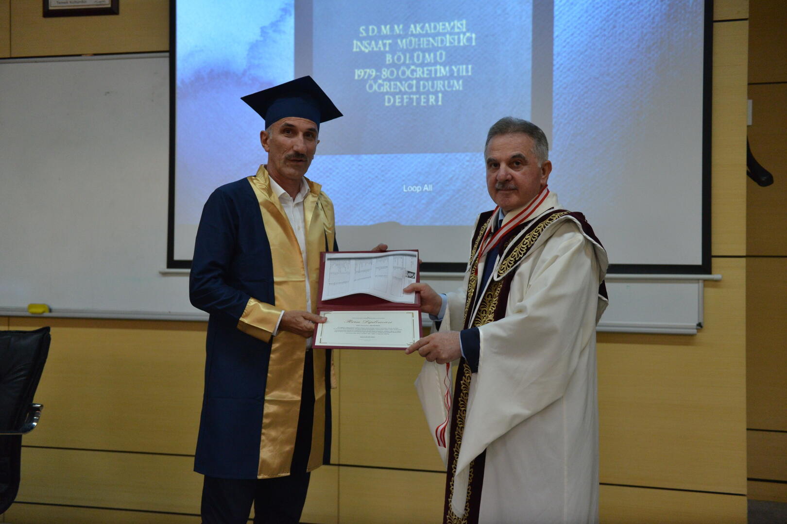 İTÜ Sakarya Mühendislik Fakültesi İnşaat Mühendisliği Bölümünün 1979 yılı girişli ve 1983 yılı mezunlarına yönelik SAÜ Kültür ve Kongre Merkezi’nde bir tören düzenlendi. Törende eski mezunlar kep ve cübbe giydi.