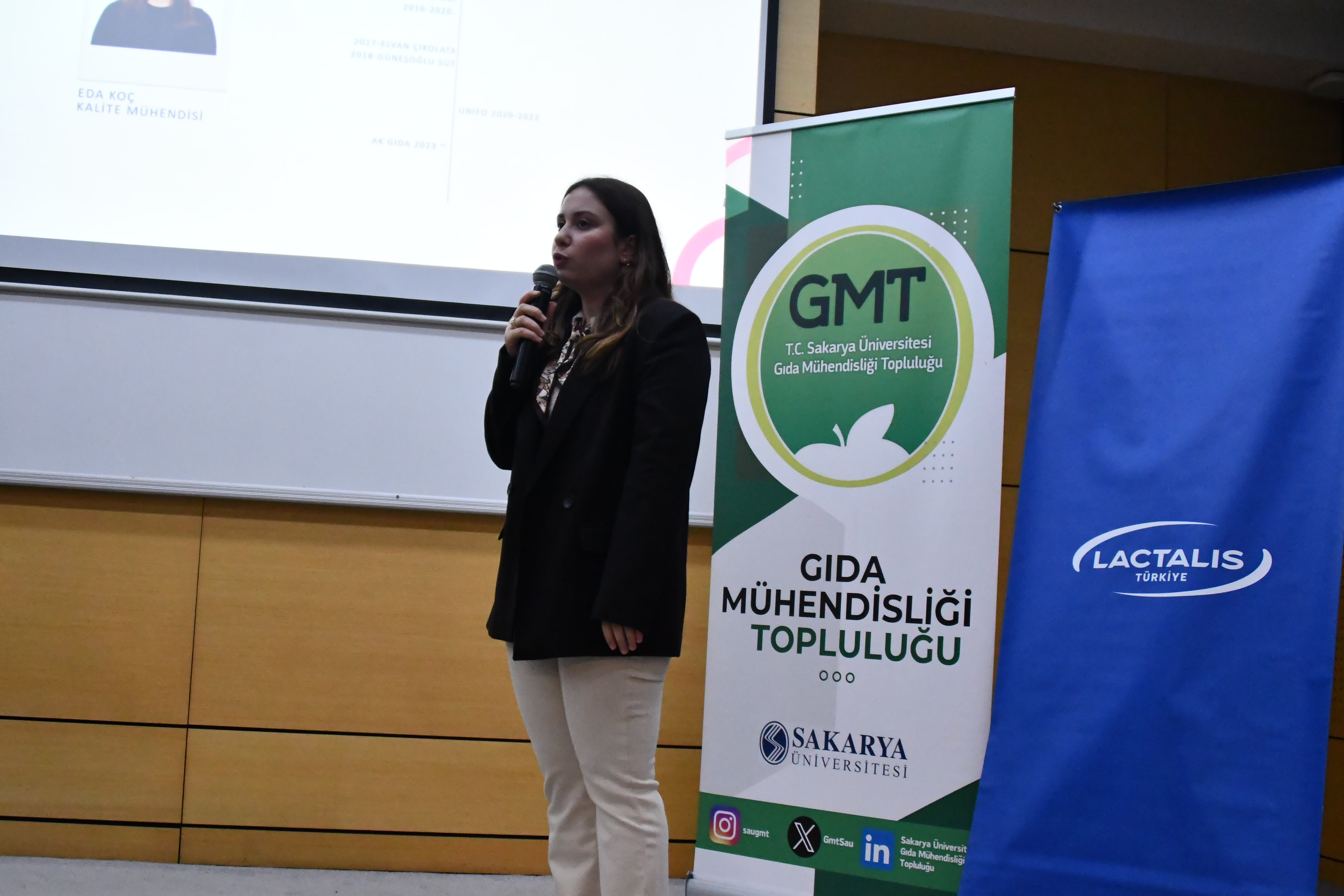 Üretim Mühendisi Beril Eroğlu, Fransa’daki üretim deneyimlerini paylaşarak yabancı dilin kariyer sürecindeki önemine dikkat çekti. Kalite Mühendisi Eda Koç, üretimin her aşamasının analiz ve denetimlerden geçtiğini, ürünlerin raf sürecinde dahi kontrol edildiğini vurguladı. Üretim Mühendisi Elif Atalay ise Lactalis Türkiye AR-GE yarışmasının kariyerinde önemli bir dönüm noktası olduğunu ifade etti. Etkinlik, soru-cevap bölümünün ardından katılımcılara teşekkür belgesi verilerek sonlandırıldı.