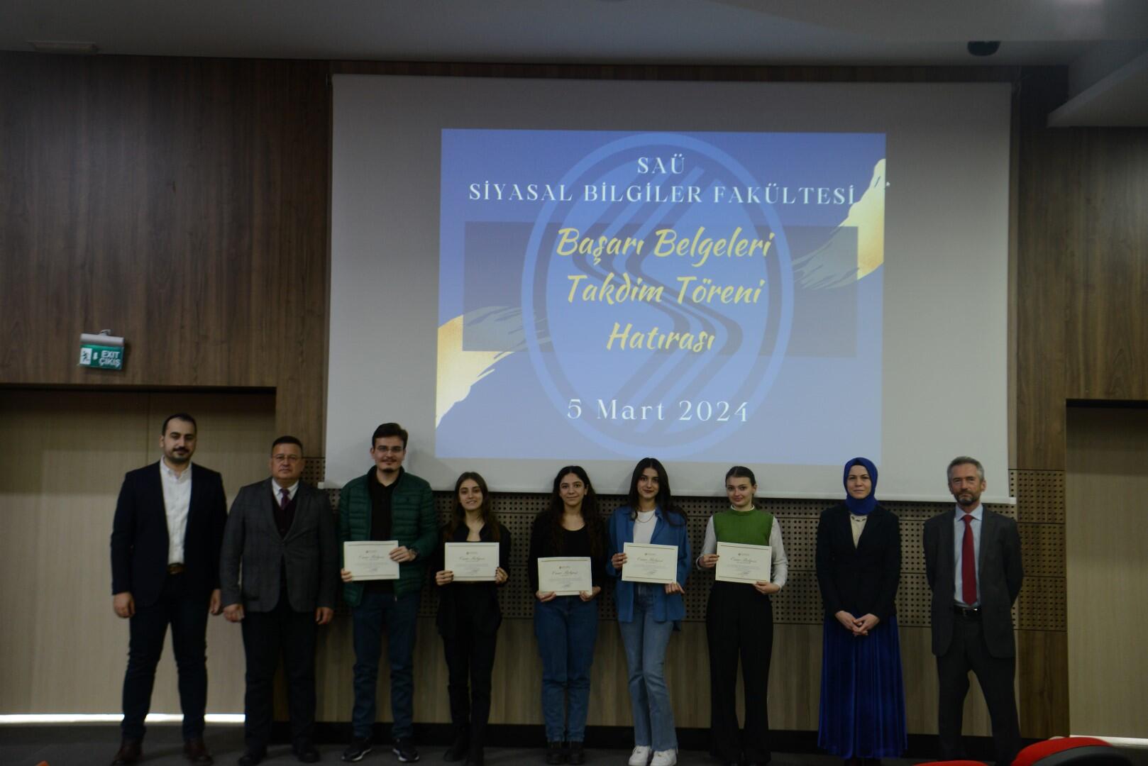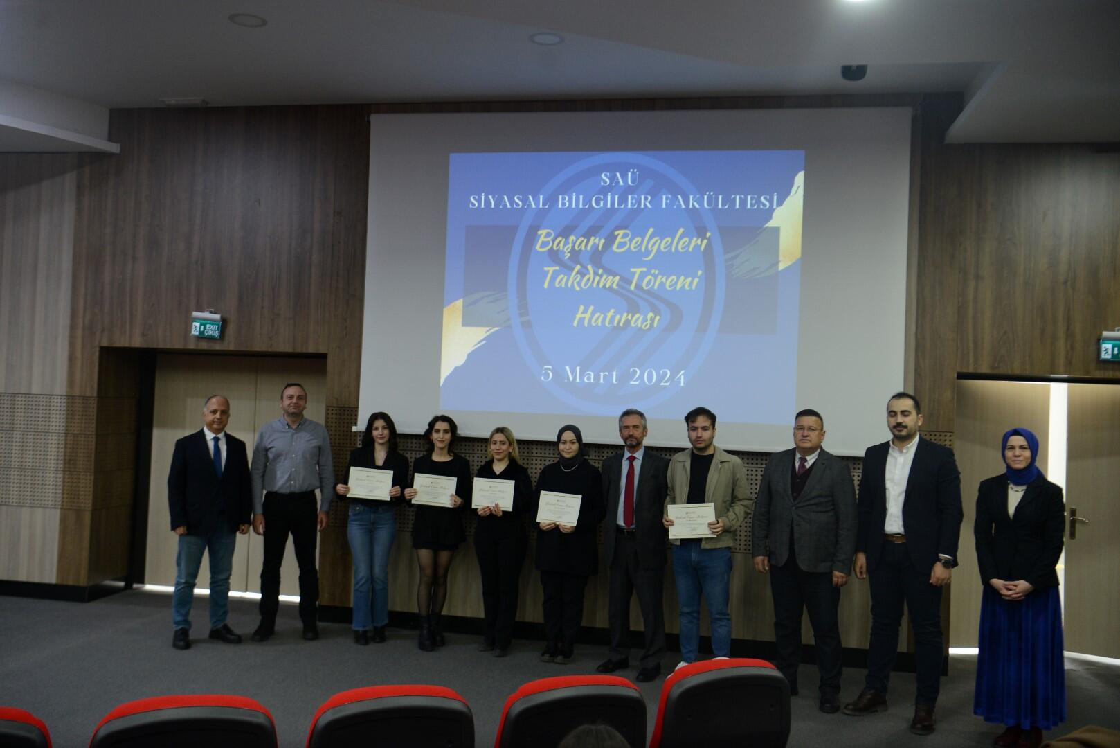 Sakarya Üniversitesi Sebahattin Zaim Konferans Salonunda Siyasal Bilgiler Fakültesi öğrencilerine başarı belgeleri takdim edildi.