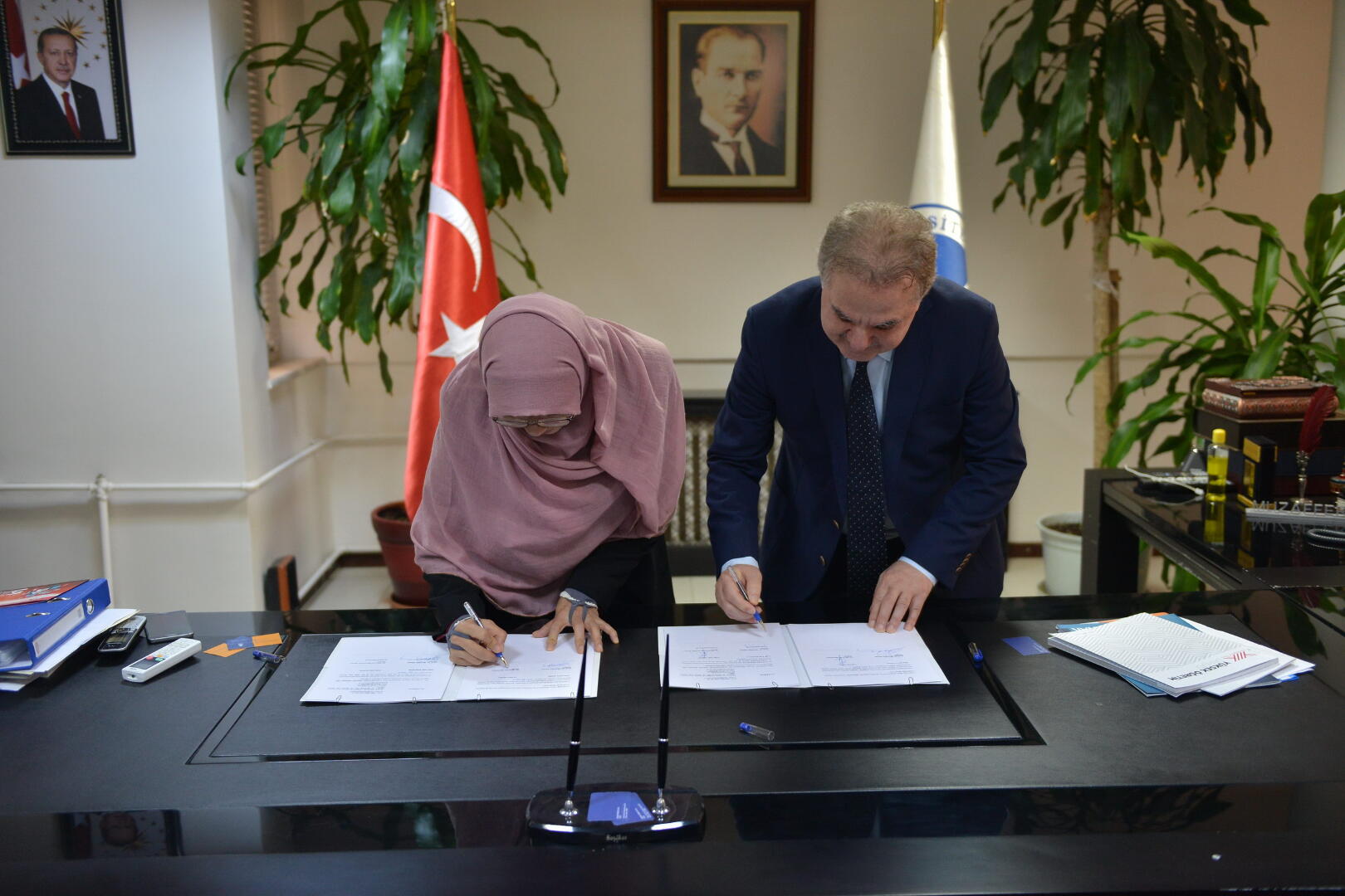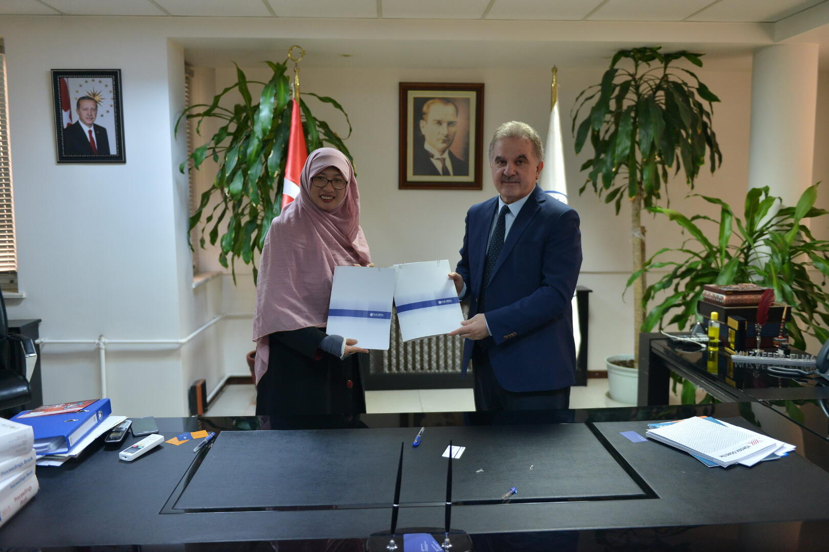 Ziyaret kapsamında Sakarya Üniversitesi Rektörü Prof. Dr. Muzaffer Elmas ile üniversiteler arası işbirliğinin geliştirilmesi, ortak kongre ve çalıştaylar düzenlenmesi ve öğrenci değişimi gibi hususları kapsayan işbirliği protokolü imzalandı.