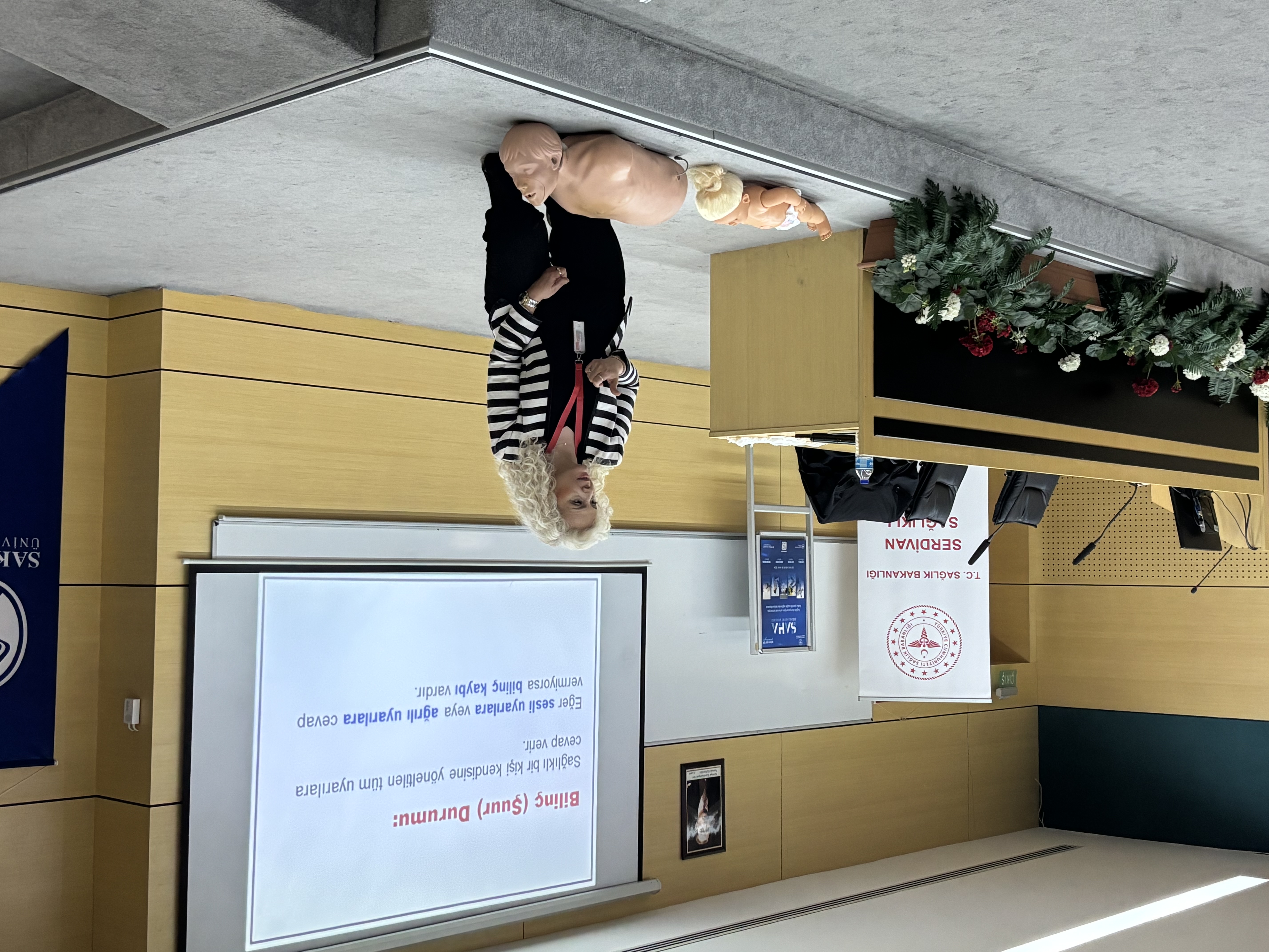 Sakarya Üniversitesinde düzenlenen “Temel İlk Yardım” eğitiminde İlk Yardım Eğitmeni Ayşe Ortalı, acil durumlarda doğru müdahalenin ve ilk dakikaların hayati önem taşıdığını vurguladı.