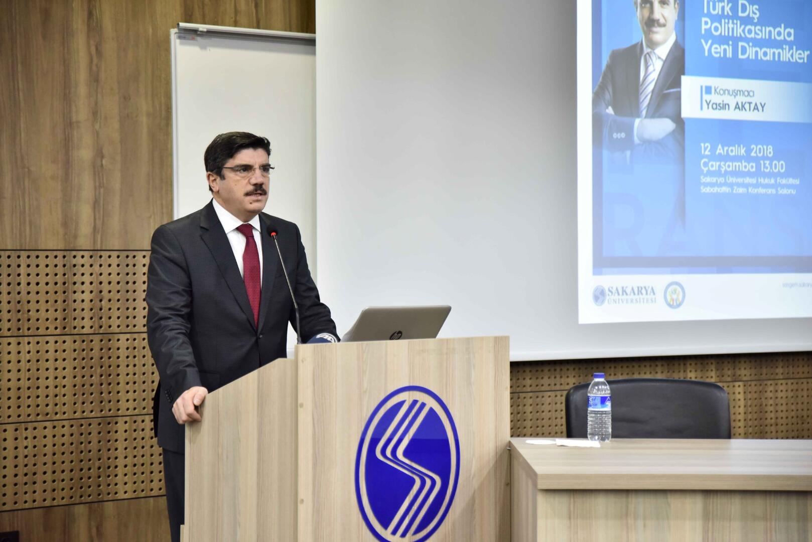 SAÜ Hukuk Fakültesi Sabahattin Zaim Konferans Salonu’nda gerçekleşen etkinlikte “Türk Dış Politikasında Yeni Dinamikler” başlıklı konu ele alındı.