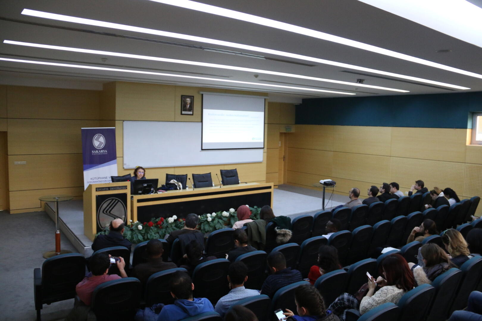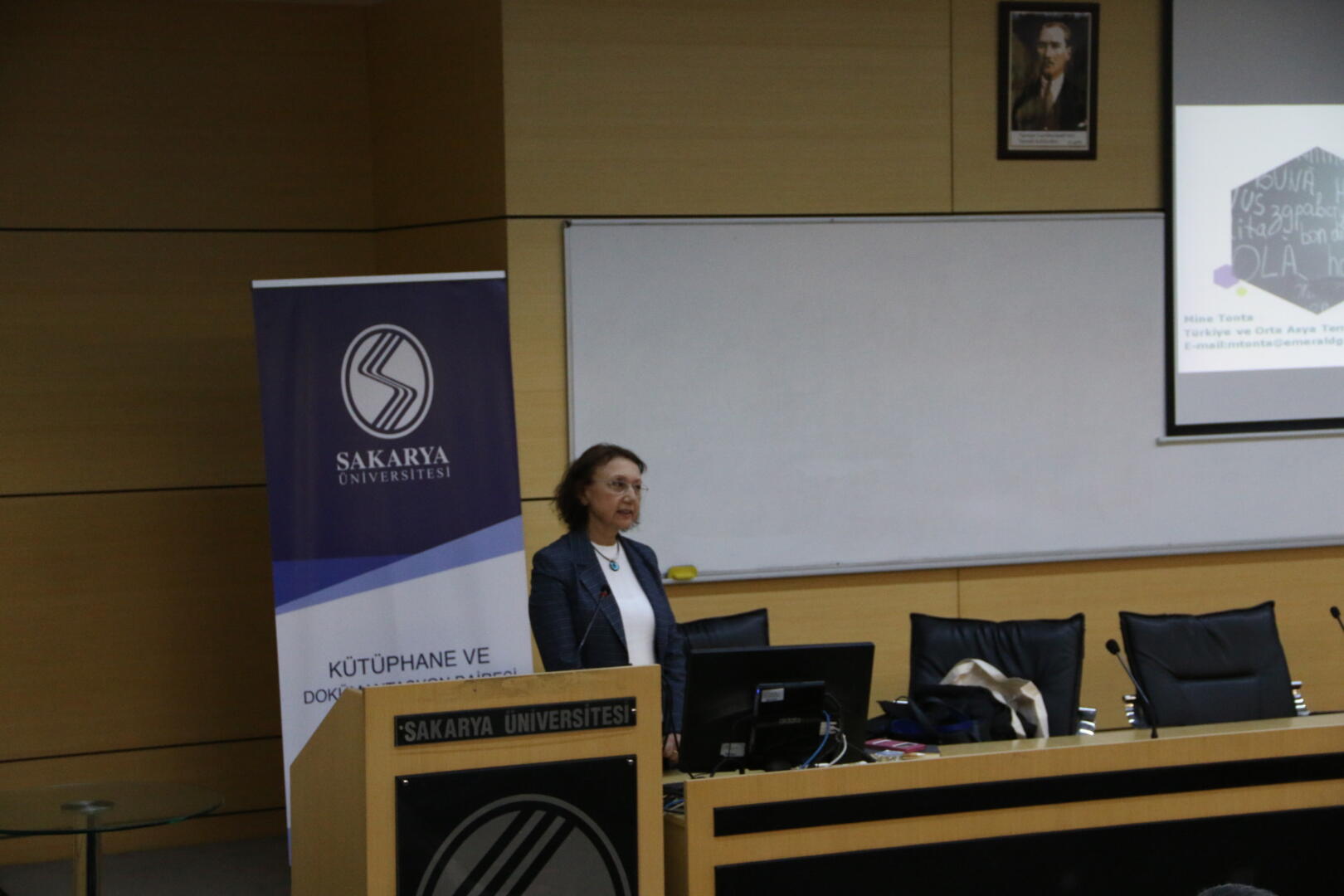 SAÜ Kütüphane ve Dokümantasyon Daire Başkanlığı tarafından, Kültür ve Kongre Merkezi Fuat Sezgin Salonunda “Uluslararası Dergilerde Yayın Yapma Eğitim Semineri” düzenlendi. Düzenlenen seminere konuk olarak Emeral Publishing Türkiye Temsilcisi Mine Tonta katıldı.