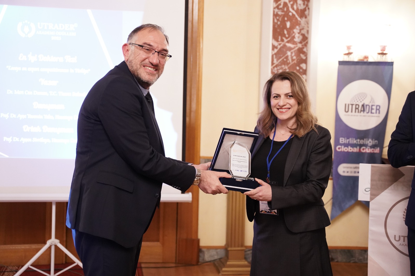 Uluslararası Ticaret Ağı Derneği (UTRADER) tarafından Sakarya Üniversitesi paydaşlığında bu yıl dördüncüsü düzenlenen “2025 Akademi Ödülleri Töreni”, 6 Kasım tarihinde İstanbul Adile Sultan Kasrı’nda gerçekleştirildi. Türkiye’nin ihracatına ve firmaların uluslararasılaşmasına katkı sağlayan akademik çalışmaların ödüllendirildiği törene, çok sayıda akademisyen, iş dünyası temsilcisi ve dernek üyeleri katıldı.