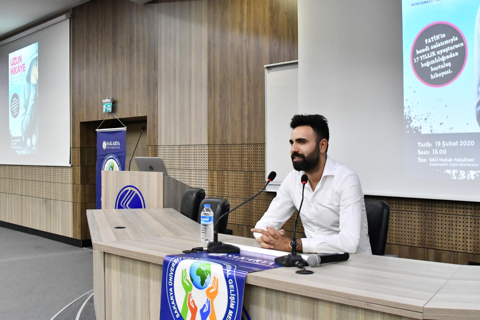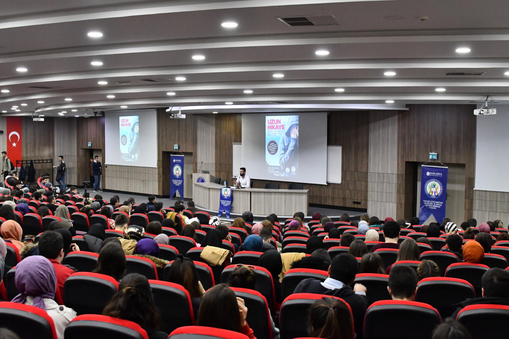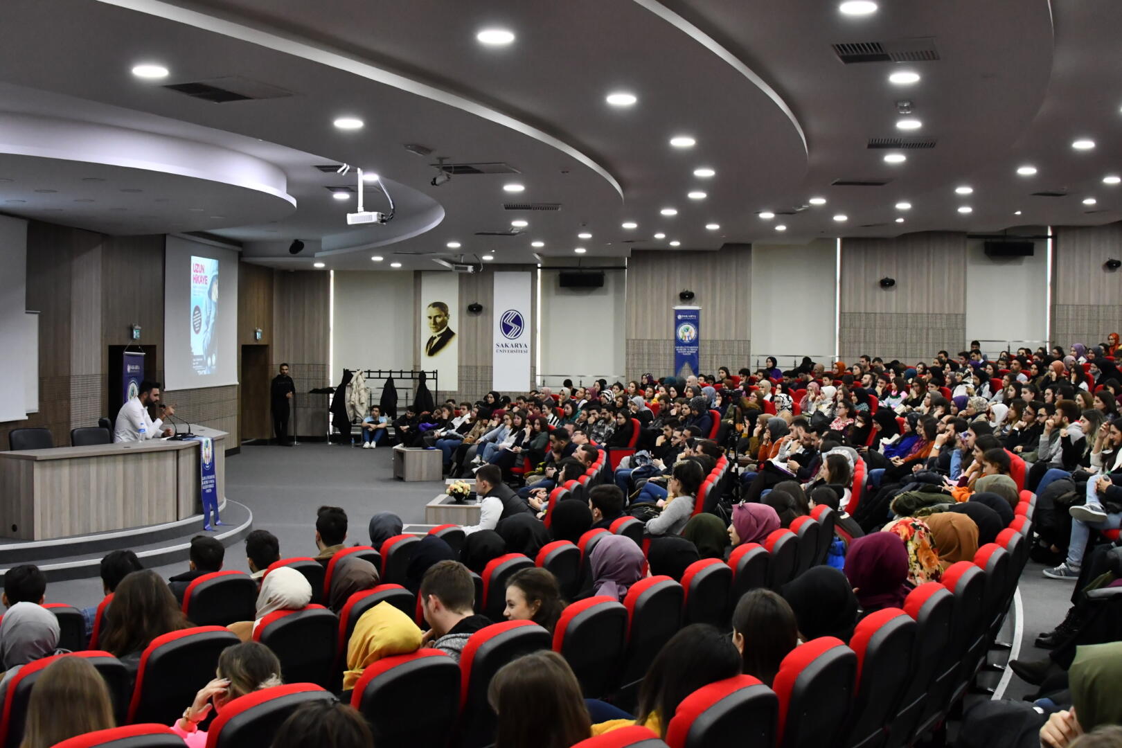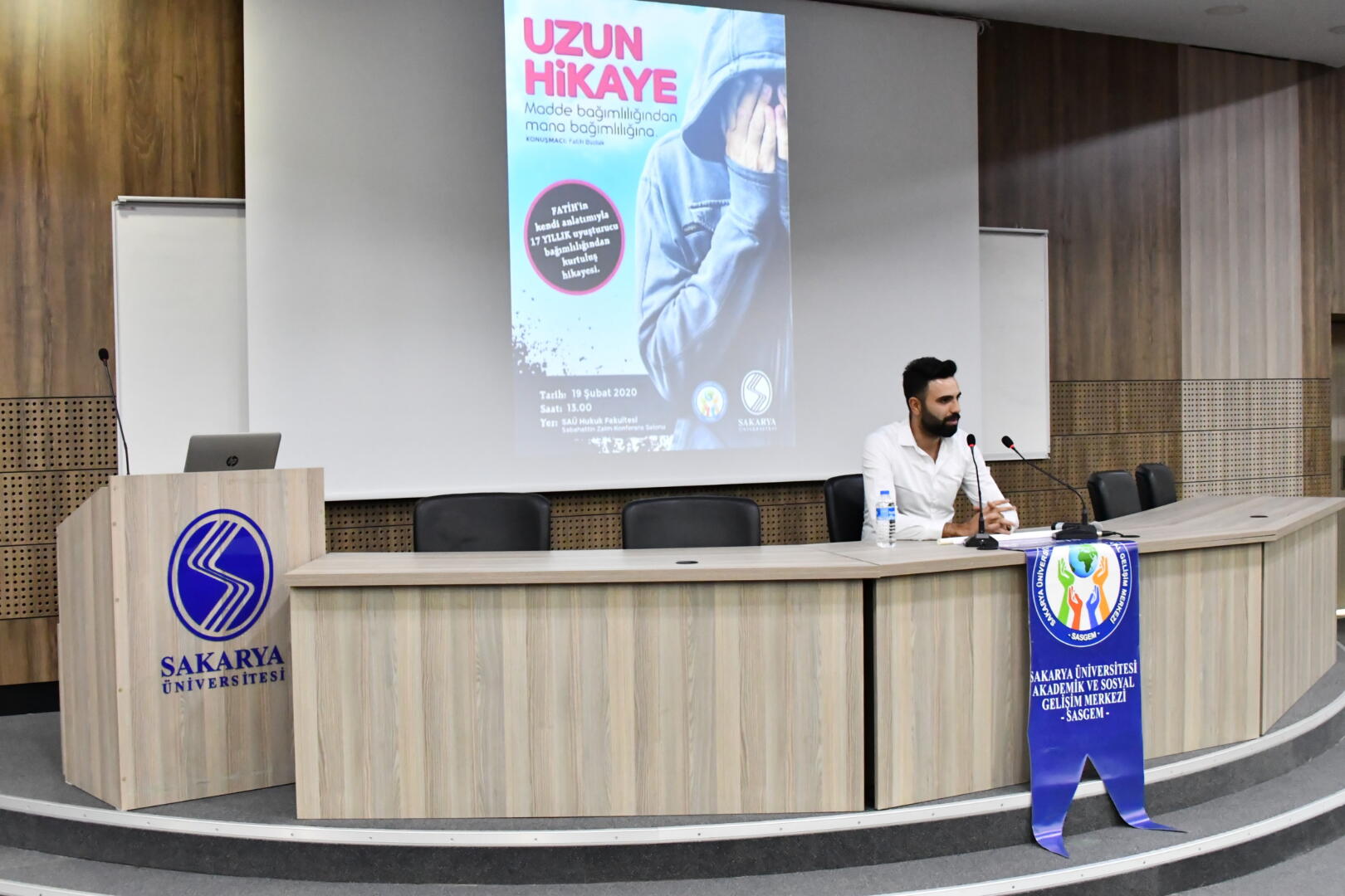 SAÜ Akademik ve Sosyal Gelişim Merkezince (SASGEM), Hukuk Fakültesi Sabahattin Zaim Konferans Salonunda düzenlenen etkinliğe Fatih Budak konuk oldu. Konferansta “Uzun Hikâye: Madde Bağımlılığından Mana Bağımlılığına” konusu ele alındı.