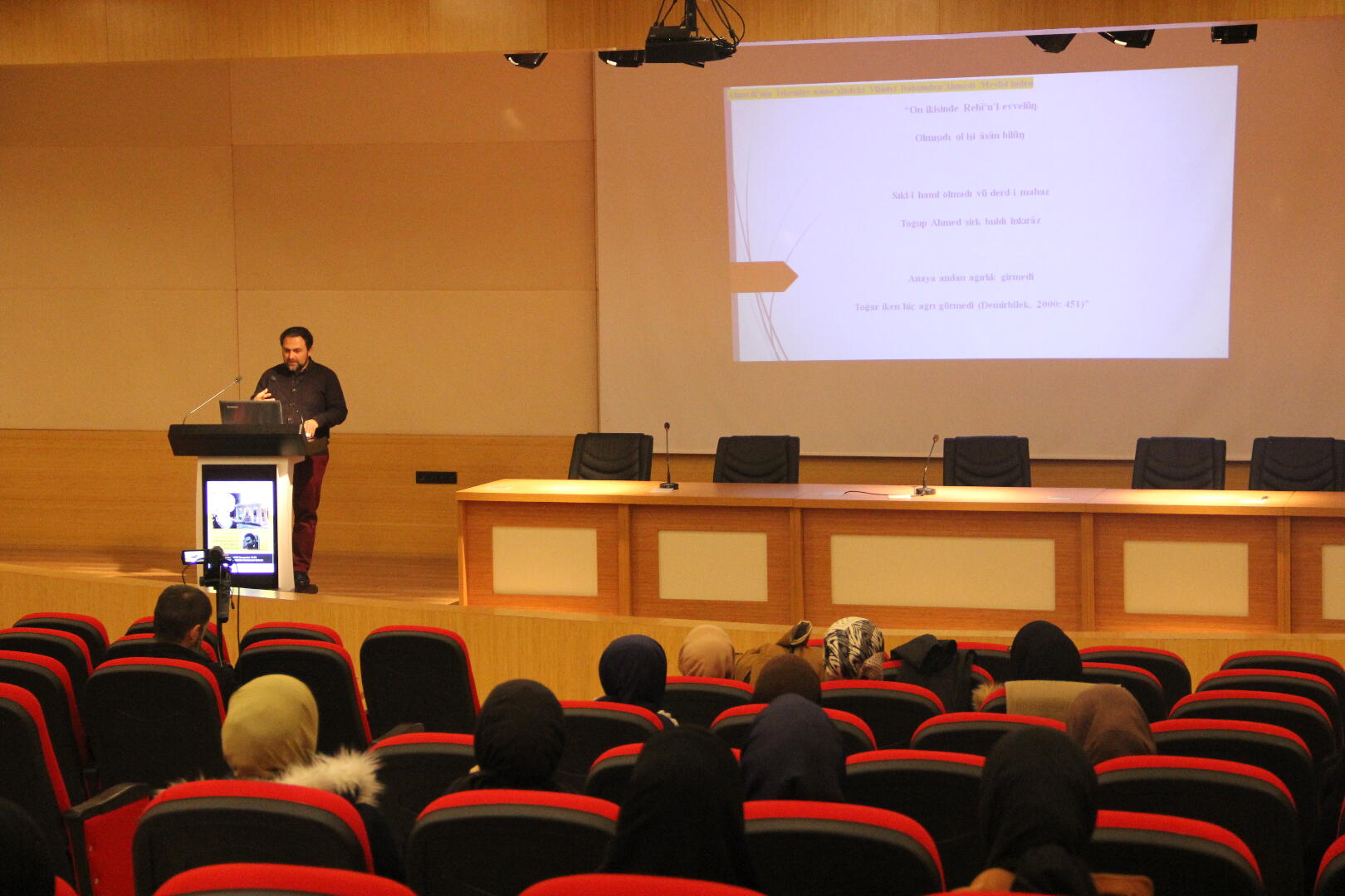 İlahiyat Fakültesi Dekanı Prof. Dr. Ahmet Bostancı, İslam Tarihi ve Sanatları Bölüm Başkanı Prof. Dr. Mehmet Memiş, öğretim üyeleri ve öğrencilerin katılımıyla gerçekleşen seminer Bölüm Başkanı Prof. Dr. Mehmet Memiş’in açılış konuşması ile başladı. Halk nezdinde daha çok Mevlid adıyla bilinen bu eserin 1400’lü yılların başlarında Bursa Ulu Camii imamı olan merhum Süleyman Çelebi tarafından kaleme alındığını ve o günden bugüne bilhassa Osmanlı coğrafyasında çok sevilerek yaygınlaştığını belirten Prof. Dr. Mehmet Memiş, bu önemli metnin başta Hz. Peygamber’in (s.a.) doğum günlerinde olmak üzere çeşitli vesilelerle okunmasının adet haline geldiğini, asırlardır dillerde ve gönüllerde dolaşarak halkımızın manevi coşkusunu güçlendirdiğini ifade etti.