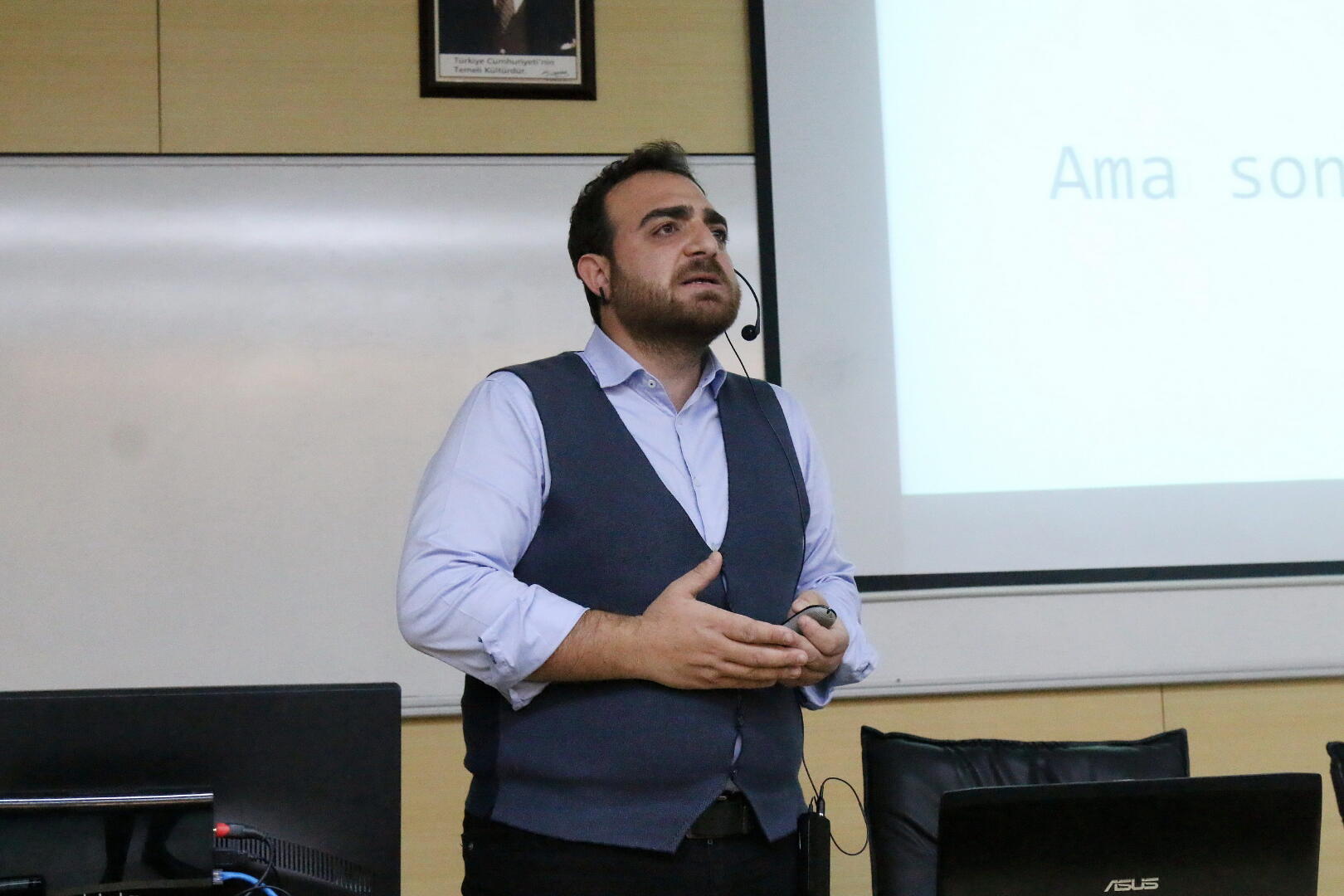 Cem Özkurt da konuşmasında öğrenmeyi öğrenmek, disiplinler arası bağ kurmak, teknolojiyi yönetmek ve girişimcilik 4.0 konularına değindi. Özkurt, “Girişimcilikte en çok sıkıntı yaşadığımız konu, verinin bilgiye dönmesidir. Sizlerin davranışları bizler için çok önemlidir. İnsanın, yaşantısını modelleyebileceğimiz 141 tane niteliği vardır. Sergilemiş olduğunuz davranışlar çok güzel olabilir. Ama ne kadar daha yerinde olması gerektiği konusunda bilgilendirilmiyorsunuz. Sıkıntımız burada başlıyor. Yeni nesil artık öğrenmeyi öğrenerek yetişirse, umutsuzlukları yenebilme yolunda bazı adımlar atabileceklerdir” diye konuştu.