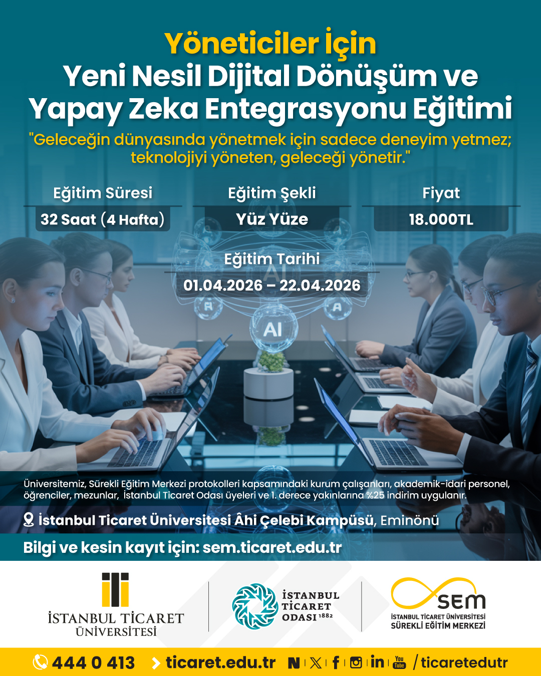 Yöneticiler İçin Yeni Nesil Dijital Dönüşüm ve Yapay Zeka Entegrasyonu Eğitim Programı 04.03.2026 None